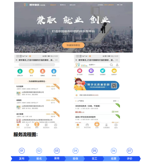 公司致力于打造山西靈活用工的領(lǐng)軍企業(yè)、“山西酒店餐飲靈活用工******勞務(wù)品牌”,實(shí)現(xiàn)酒店服務(wù)員、房嫂的真派遣。目前公司“聘學(xué)兼優(yōu)”靈活用工兼職平臺(tái)注冊(cè)兼職大學(xué)生有12萬(wàn)余人、社會(huì)兼職群體4萬(wàn)余人,是山西本土注冊(cè)人數(shù)***多、兼職服務(wù)頻次***勤、技術(shù)更新及時(shí)好用的靈活用工互聯(lián)網(wǎng)平臺(tái)。