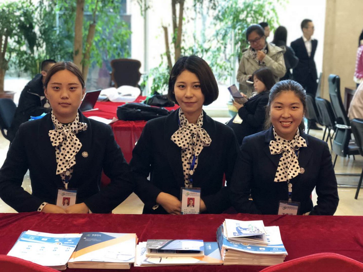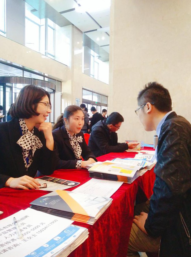 工作人員在服務(wù)臺(tái)接待求職者(PS:做服務(wù)我們是專業(yè)的)