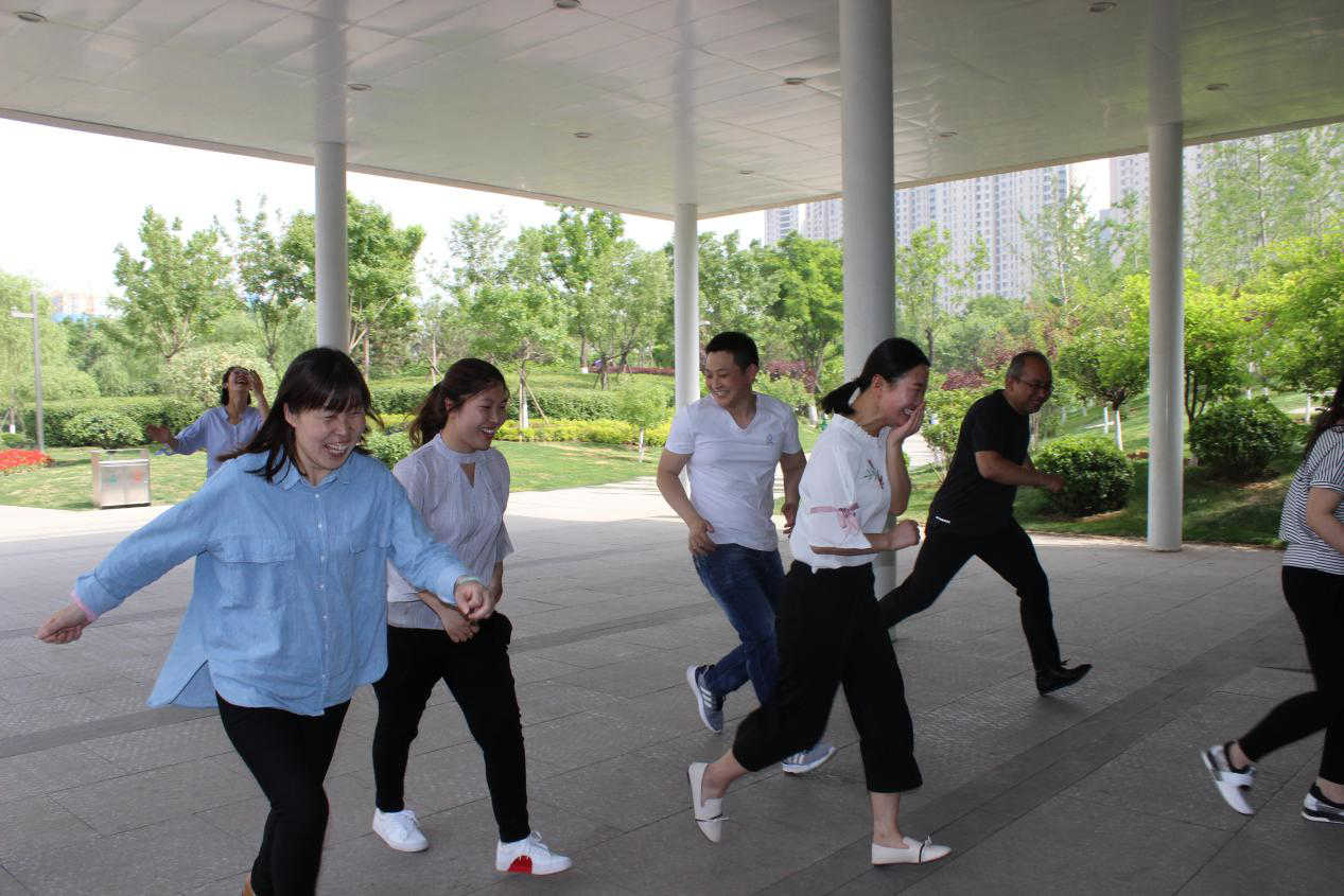 收拾下心情,大家一起來到和平公園開始游戲——“老鷹老鷹幾點了”,大部分人都忘記這個游戲該怎么玩兒了,大家邊學(xué)邊玩兒。每個人對游戲的認(rèn)識都不一樣,有人躍躍欲試,一大步一大步靠近老鷹,有人比較謹(jǐn)慎,一小步一小步前進(jìn)生怕被老鷹抓走。不過,大家都樂在其中。