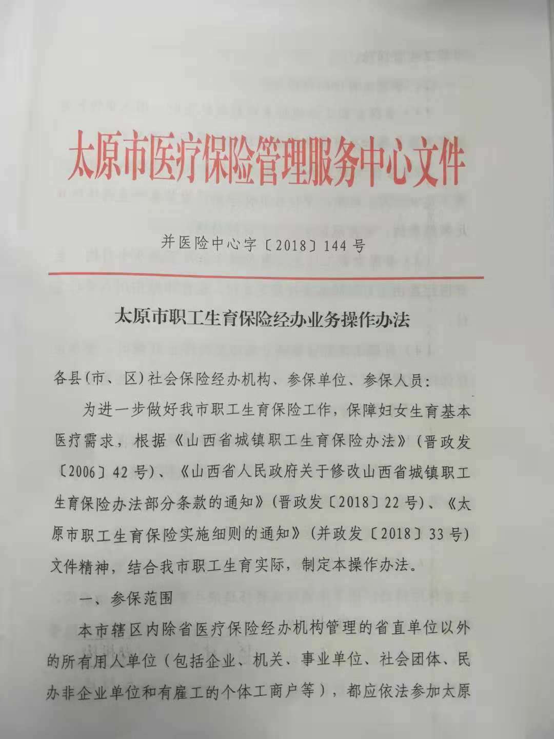 太原市職工生育保險(xiǎn)經(jīng)辦業(yè)務(wù)操作辦法