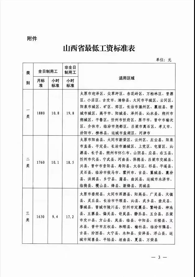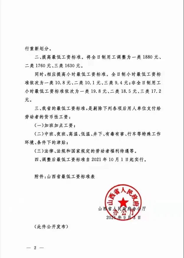 山西省關(guān)于2021年調(diào)整我省******工資標(biāo)準(zhǔn)的通知,一類地區(qū)1880元,從10月1日起執(zhí)行