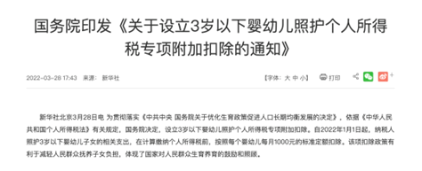 4、3歲以下嬰幼兒照護(hù)個(gè)人所得稅專項(xiàng)附加扣除自2022年1月1日起實(shí)施。