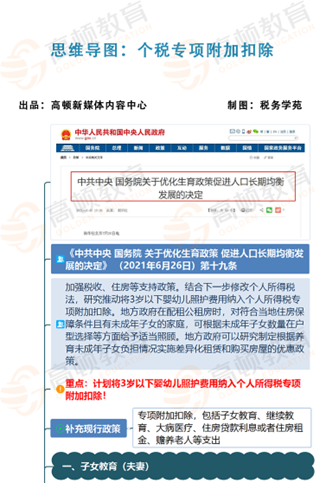 2021年6月,中共中央、國(guó)務(wù)院印發(fā)《關(guān)于優(yōu)化生育政策促進(jìn)人口長(zhǎng)期均衡發(fā)展的決定》,提出“研究推動(dòng)將3歲以下嬰幼兒照護(hù)費(fèi)用納入個(gè)人所得稅專項(xiàng)附加扣除”。這是黨中央、國(guó)務(wù)院根據(jù)我國(guó)人口發(fā)展變化形勢(shì)作出的重大決策,是促進(jìn)人口長(zhǎng)期均衡發(fā)展、推動(dòng)高質(zhì)量發(fā)展的重大舉措。3歲以下嬰幼兒照護(hù)個(gè)人所得稅專項(xiàng)附加扣除政策作為優(yōu)化生育政策的配套支持措施之一,體現(xiàn)了國(guó)家對(duì)人民群眾生育養(yǎng)育的鼓勵(lì)和照顧,有利于減輕人民群眾撫養(yǎng)子女負(fù)擔(dān)。該項(xiàng)政策實(shí)施后,有3歲以下嬰幼兒的家庭都將從中受益。