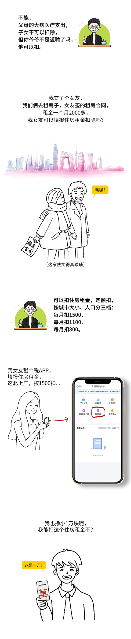 老師將具體政策進(jìn)行了梳理,來詳細(xì)看看能享受多少條個(gè)稅專項(xiàng)扣除吧!文末附上漫畫,幫大家更好的了解專項(xiàng)附加扣除!
