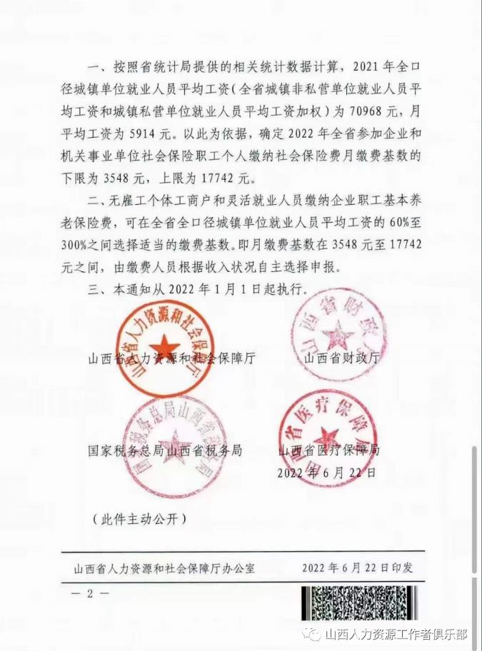 關于公布2022年繳納社會保險費基數(shù)標準等有關問題的通知