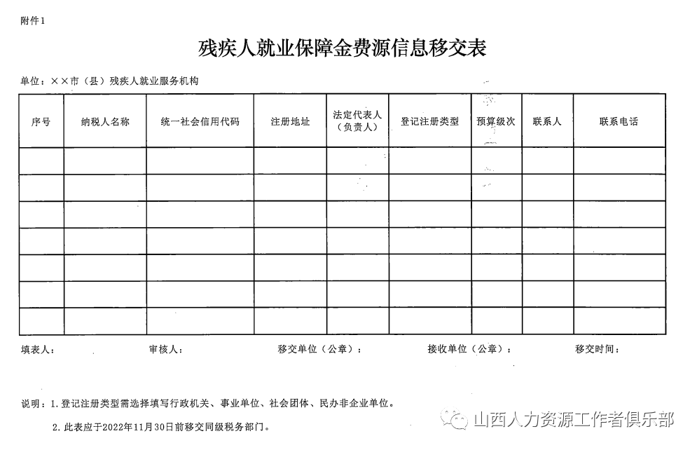 附件:1.殘疾人就業(yè)保障金費(fèi)源信息移交表.png? ? ??