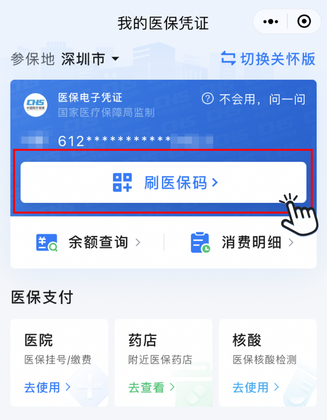 完成了前兩步之后,就可以去醫(yī)院看病了。社??ㄈ绻鼛砩弦矝]關(guān)系,可以直接用手機上的電子社保卡或者出示醫(yī)保碼,都可以刷醫(yī)保。