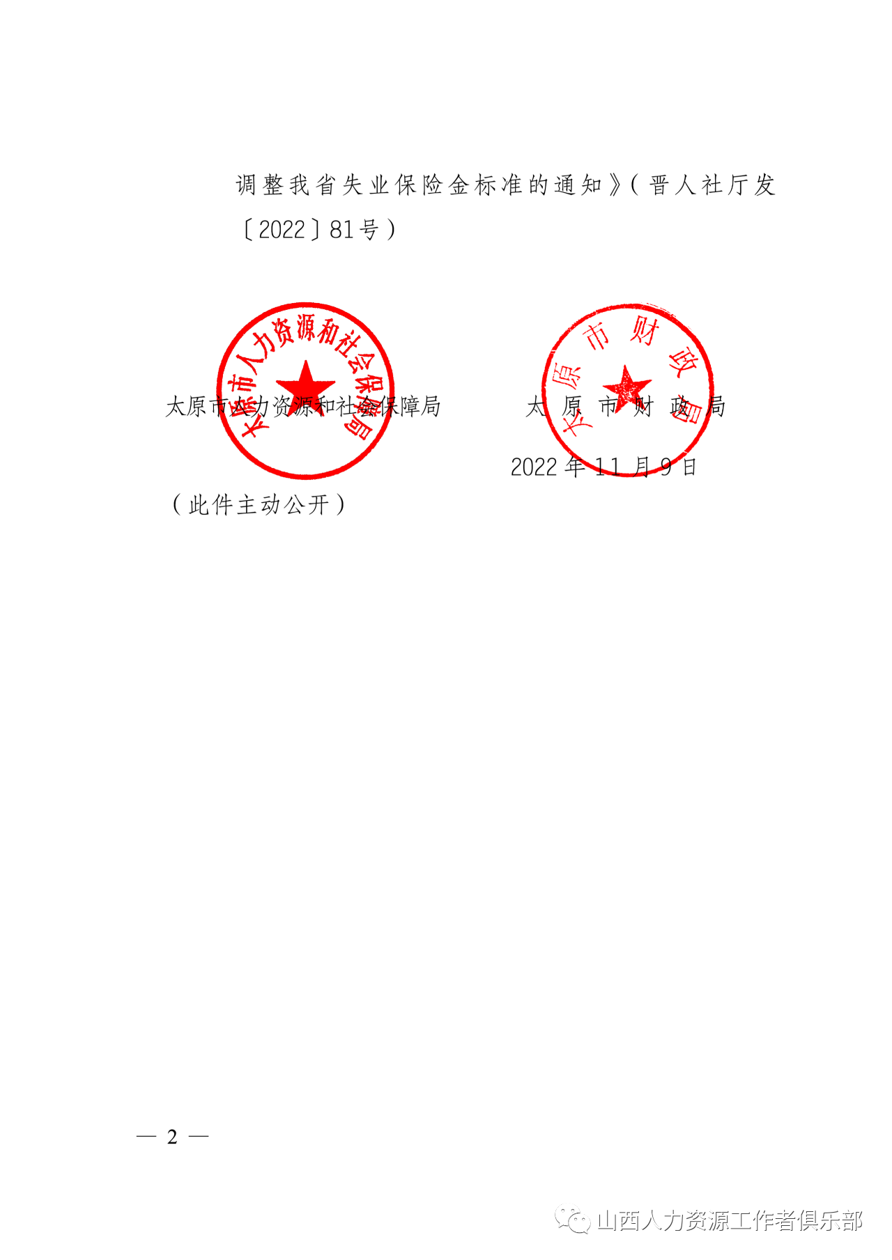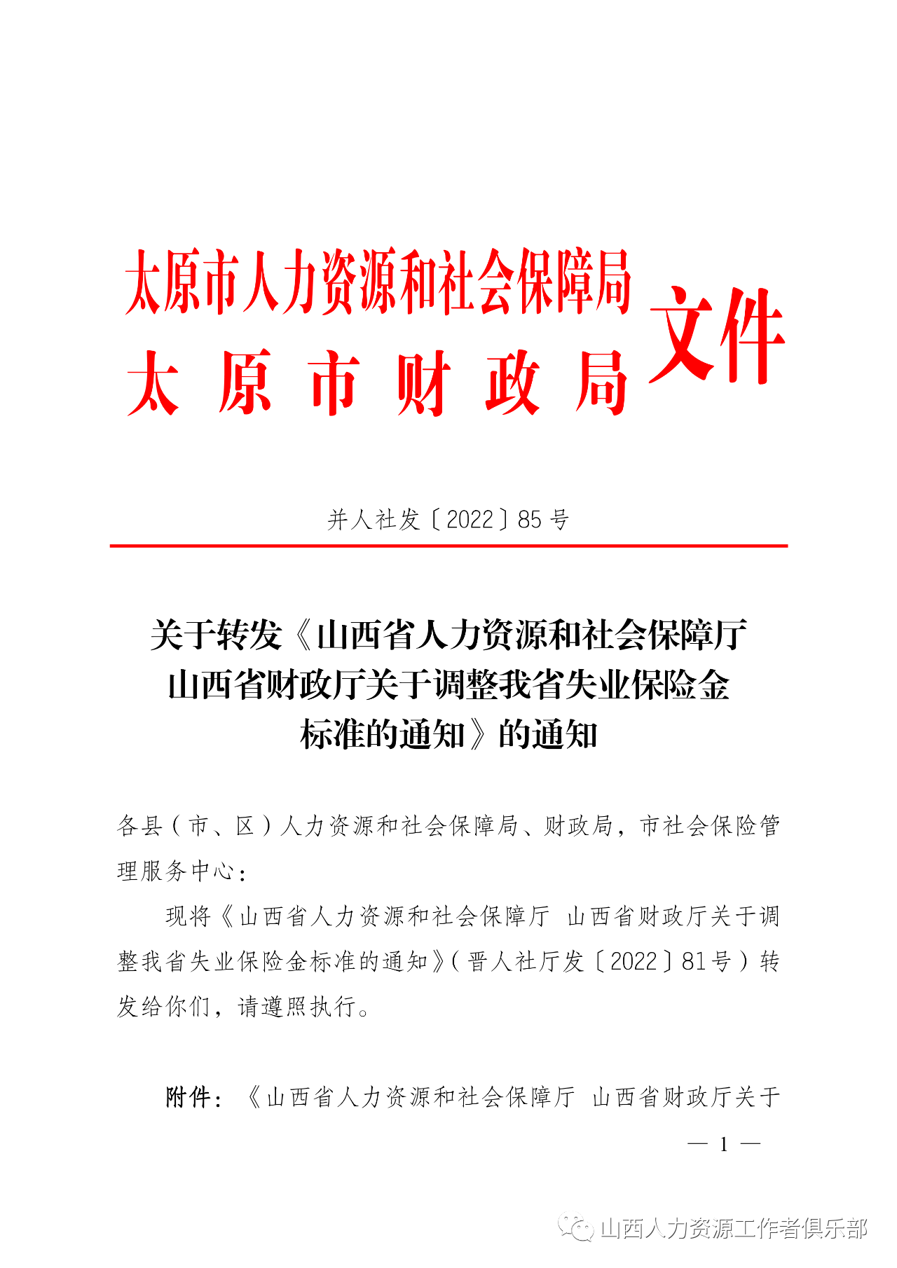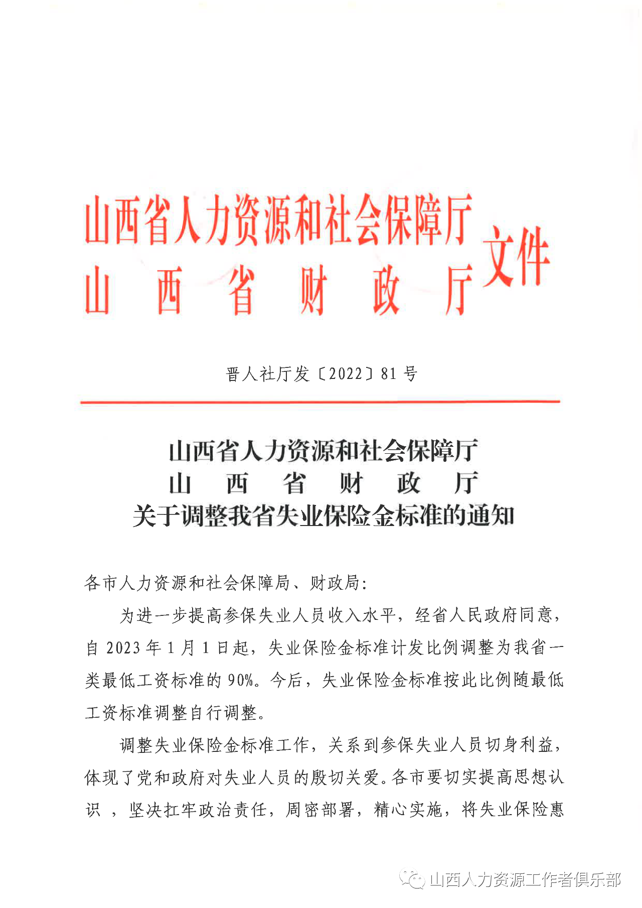 現(xiàn)將《山西省人力資源和社會保障廳 山西省財(cái)政廳關(guān)于調(diào)整我省失業(yè)保險金標(biāo)準(zhǔn)的通知》(晉人社廳發(fā)〔2022〕81號)轉(zhuǎn)發(fā)給你們,請遵照執(zhí)行。
