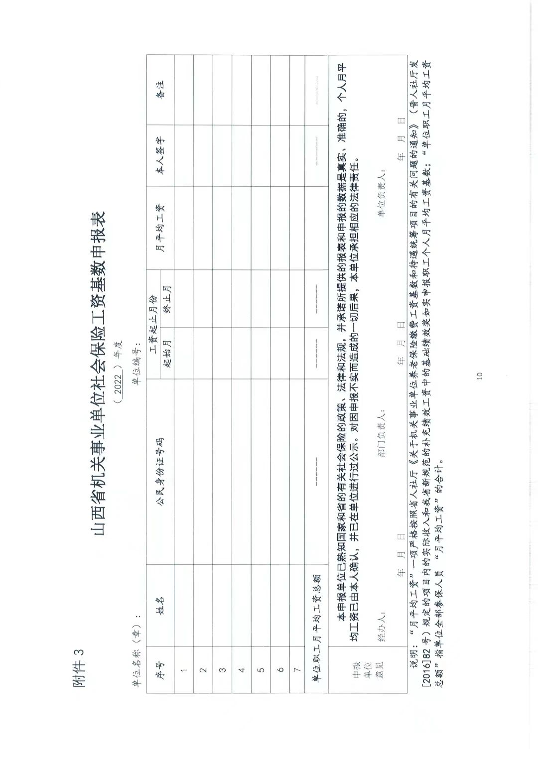 2.《山西省機關事業(yè)單位社會保險工資基數(shù)申報表》(附件3),