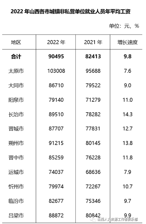2022年山西省城鎮(zhèn)非私營單位就業(yè)人員年平均工資為90495元,比上年增加8082元,名義增長9.8%??鄢齼r格因素,實際增長7.5%。在崗職工年平均工資為92882元。