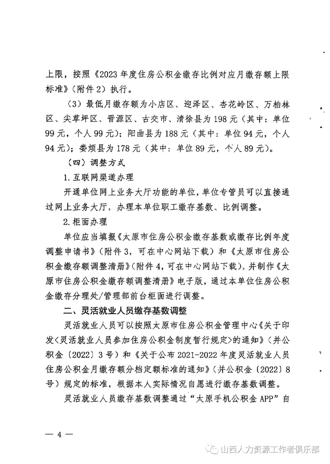 (3)******月繳存額為小店區(qū)、迎澤區(qū)、杏花嶺區(qū)、萬柏林 區(qū)、尖草坪區(qū)、晉源區(qū)、古交市、清徐縣為 198 元(其中:單位 99 元,個人 99 元);陽曲縣為 188 元(其中:單位 94 元,個人 94 元);婁煩縣為 178 元(其中:單位 89 元,個人 89 元)。