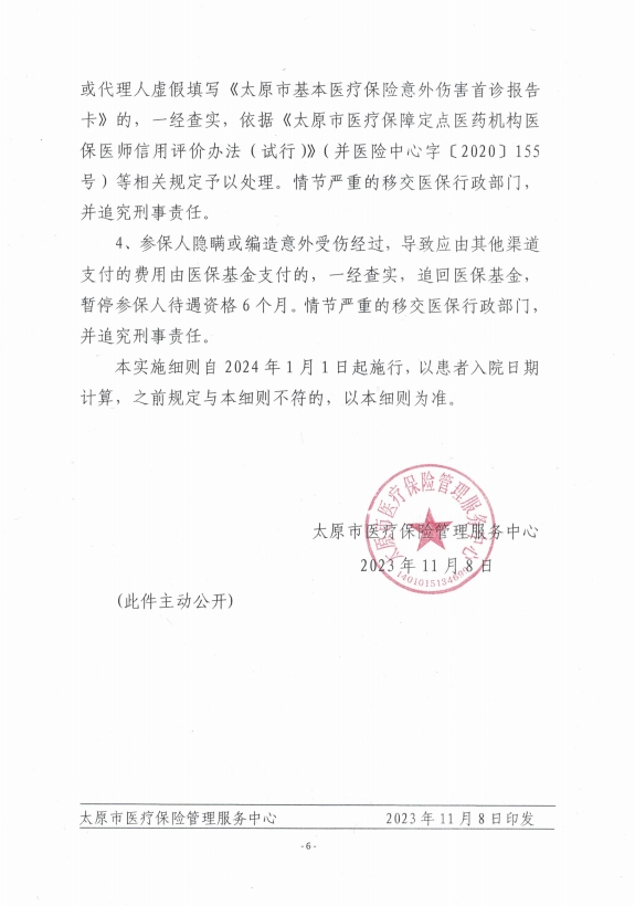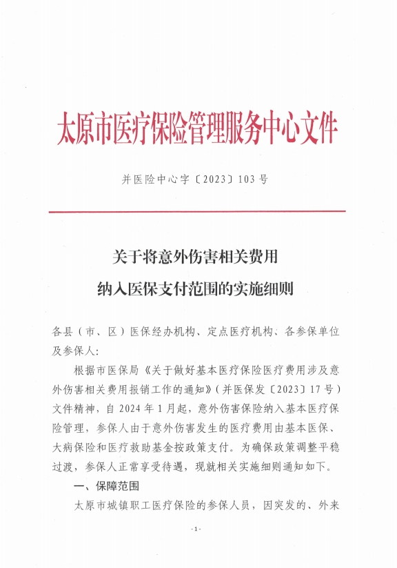11月24日,從太原市醫(yī)保中心傳來消息,自2024年1月起,意外傷害保險納入基本醫(yī)療保險管理,參保人由于意外傷害發(fā)生的醫(yī)療費用由基本醫(yī)保、大病保險和醫(yī)療救助基金按政策支付。